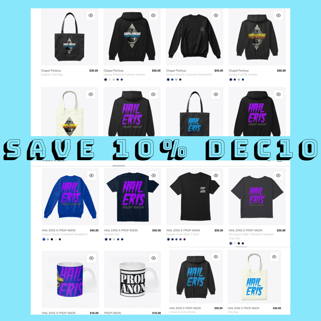 IF YOU TAKE A PICTURE OF YOURSELF AND CHAPEL PERILOUS: THE LIFE & THOUGHT CRIMES OF ROBERT ANTON WILSON, and then post it to Instagram, tagging @mediaheist23, you will receive a 15% DISCOUNT on all items.